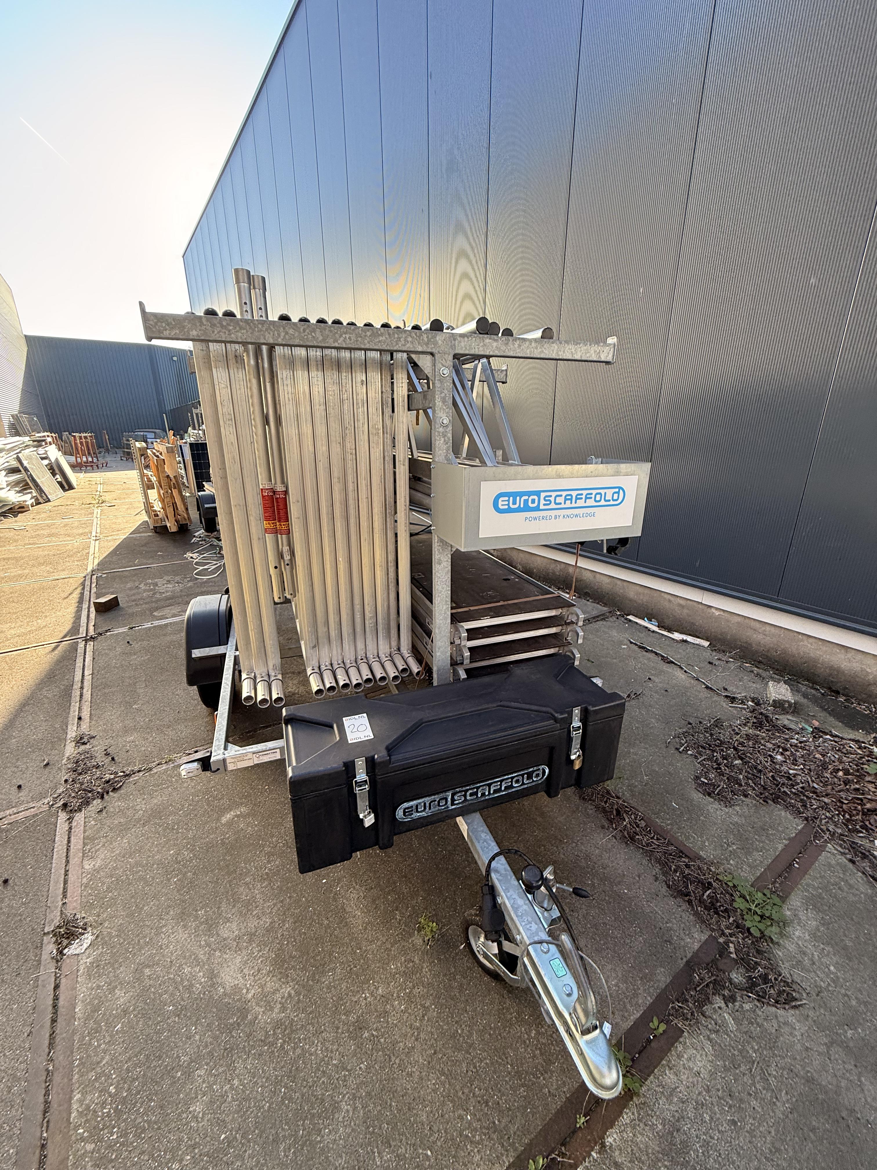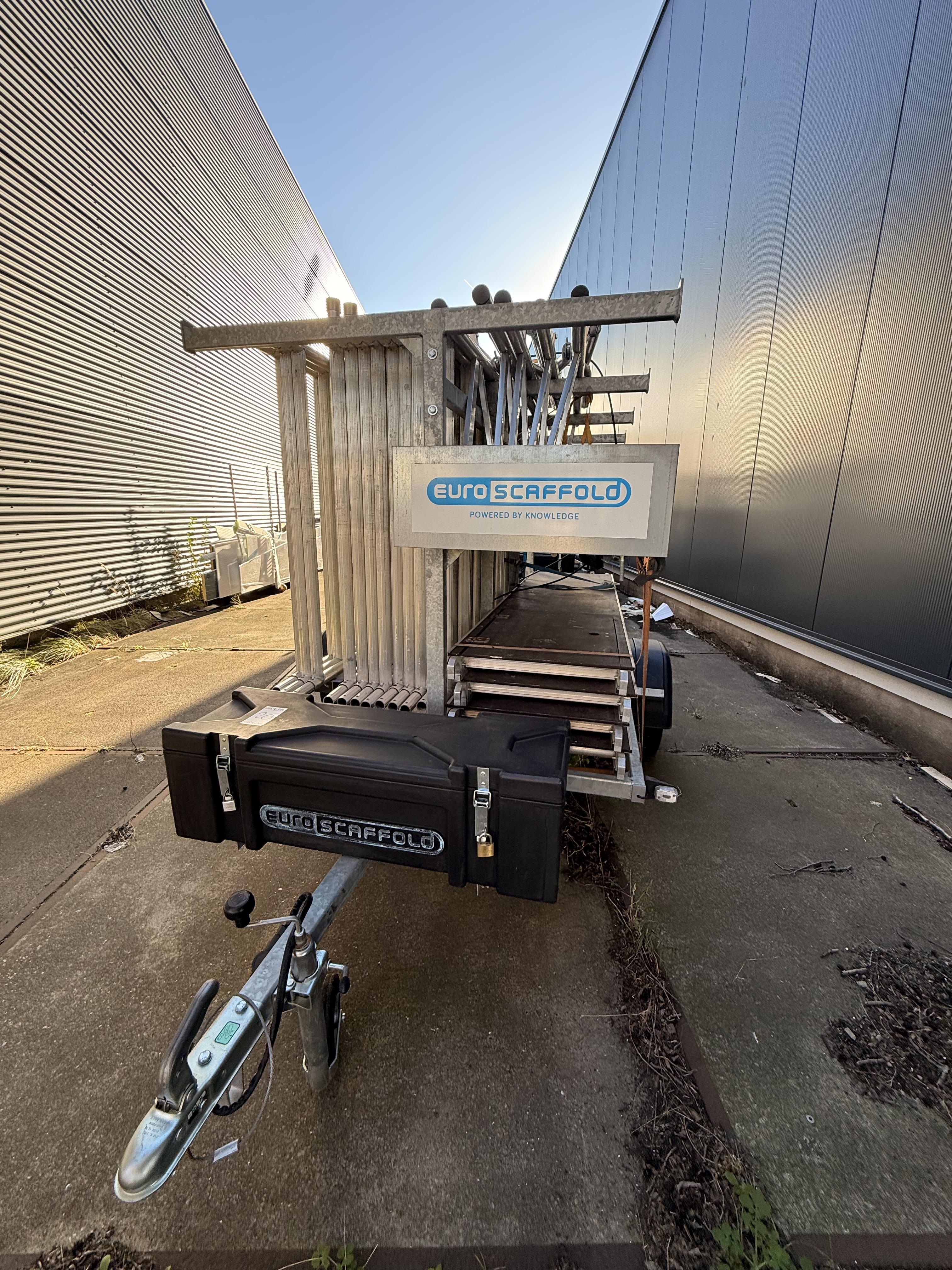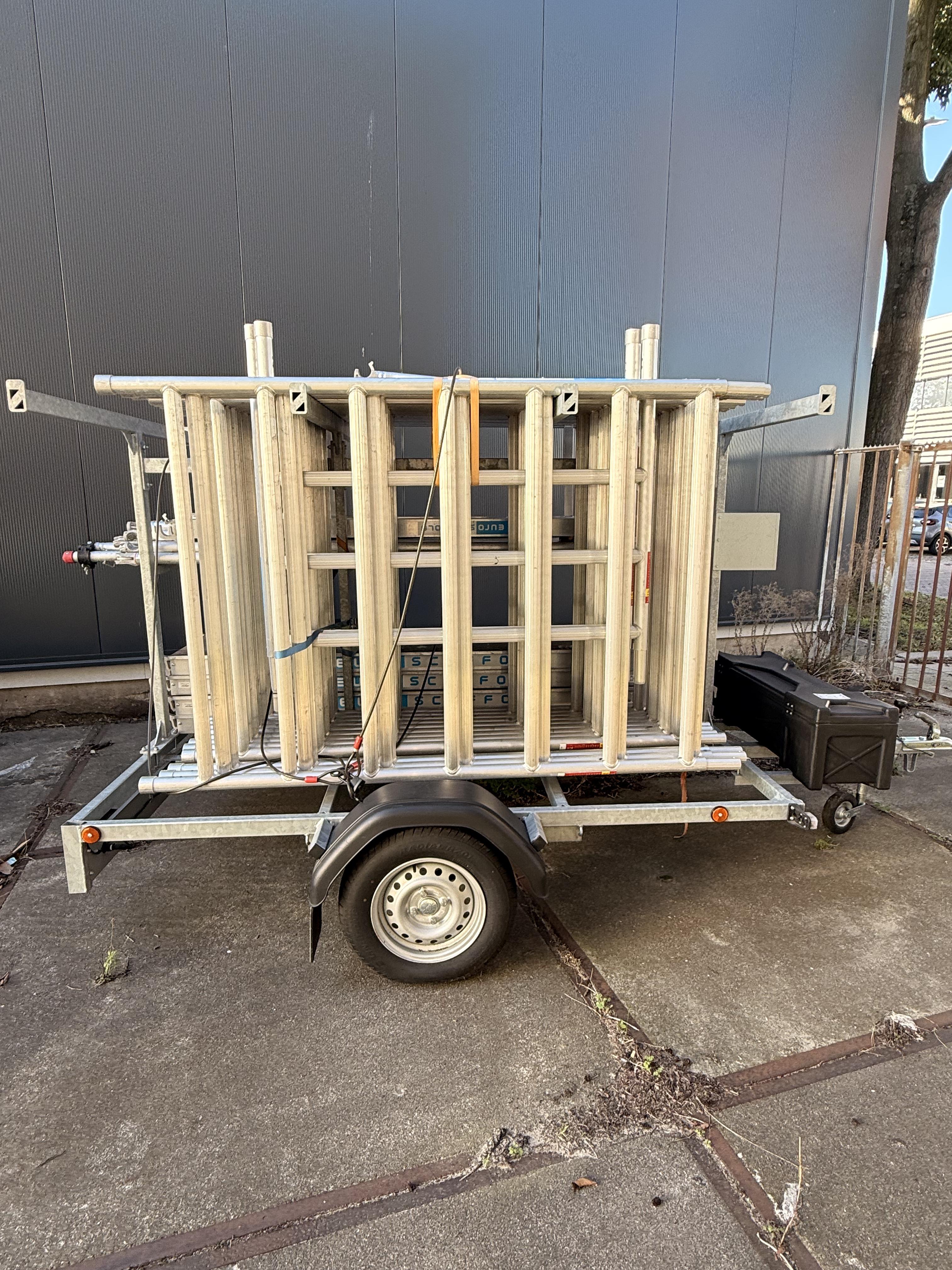 EuroScaffold steigeraanhanger compleet – aluminium rolsteiger met platformen en opbergkast