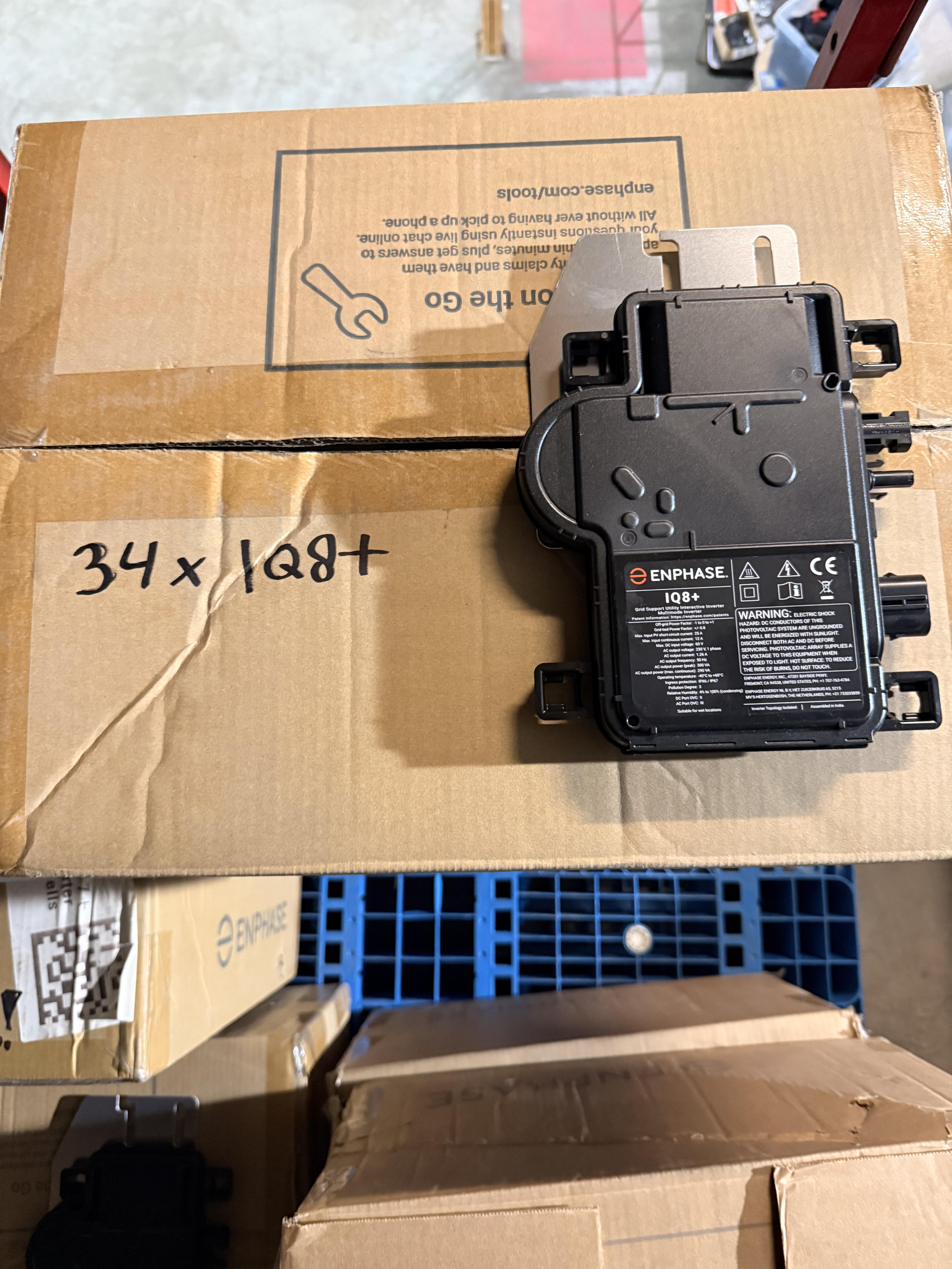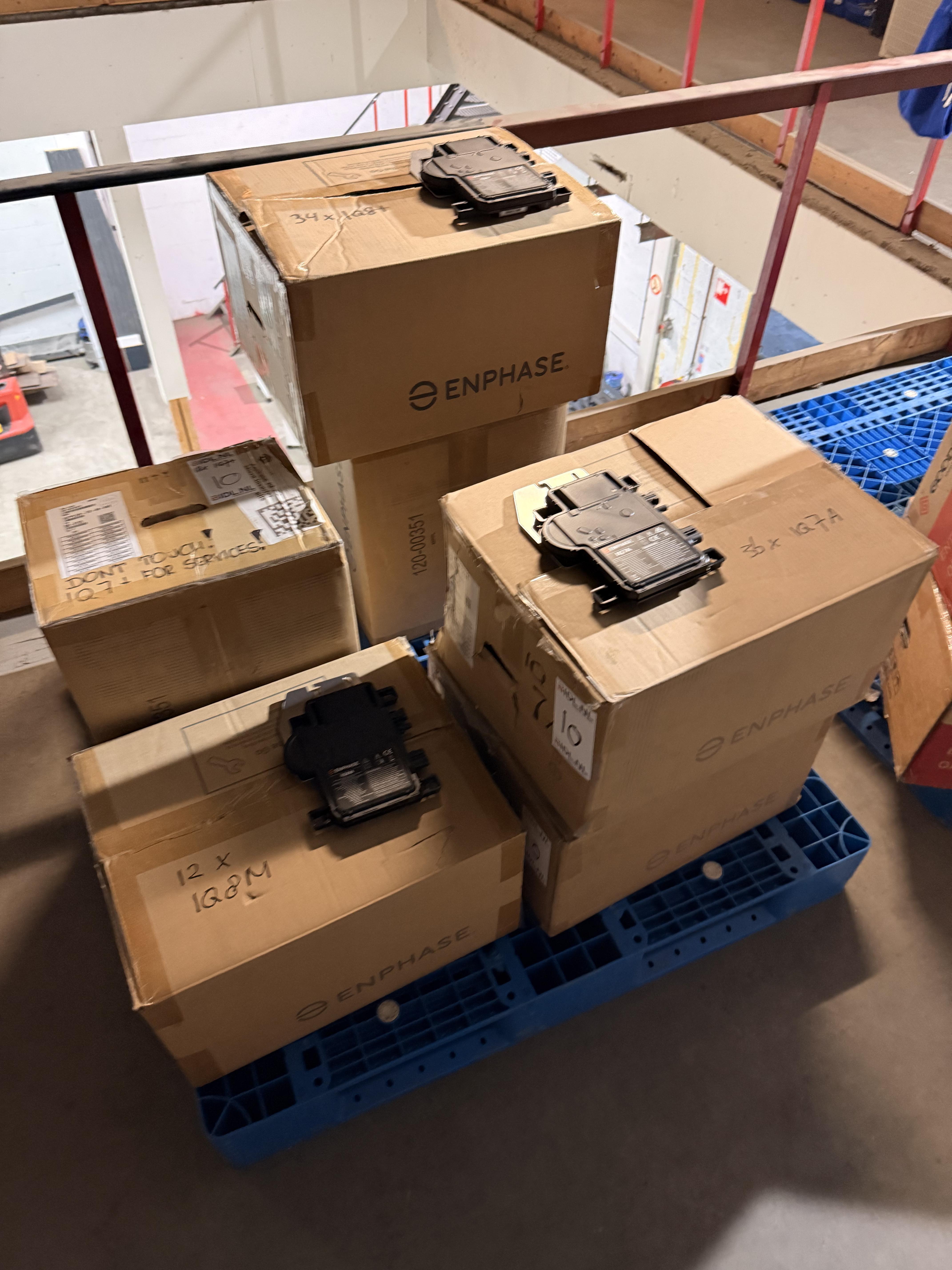 De partij bevat meerdere types (IQ7+, IQ7A, IQ8+, IQ8M) en is ideaal voor installateurs of handelaren die met Enphase-systemen werken. De producten zijn nieuw in doos, enkele dozen zijn geopend voor controle.