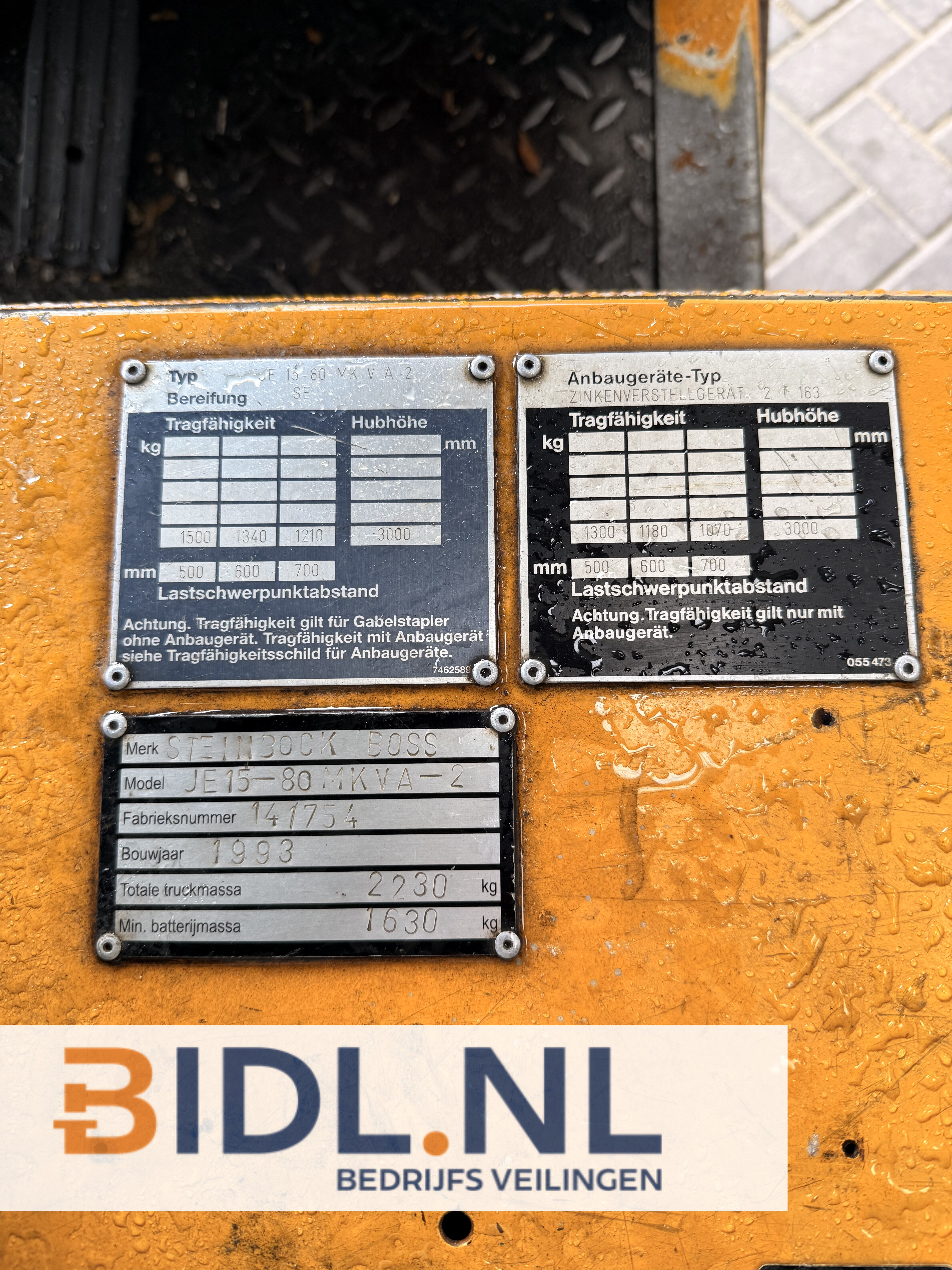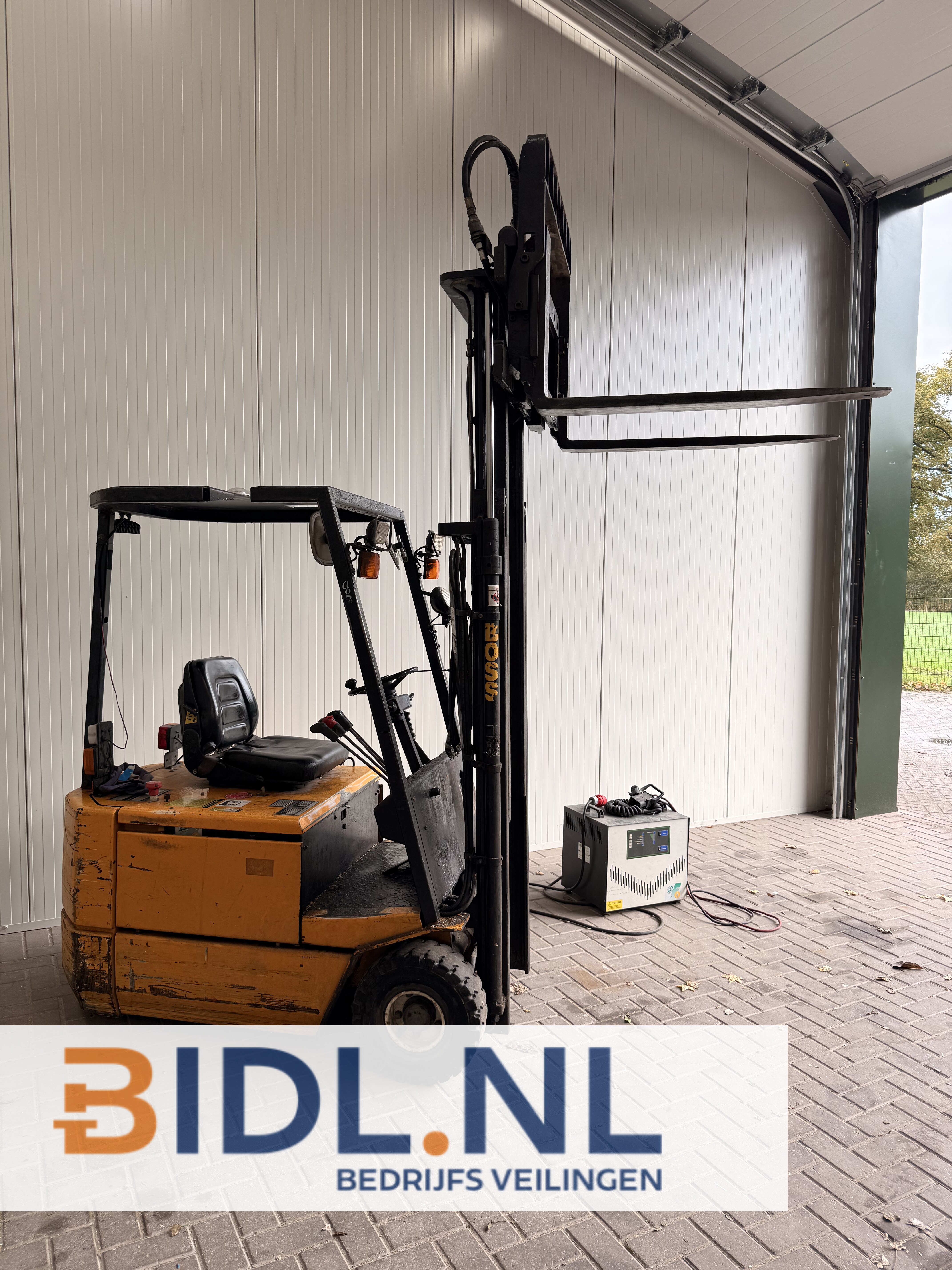Steinbock Boss elektrische heftruck (model JE15-80 MKVA-2) inclusief industriële acculader.