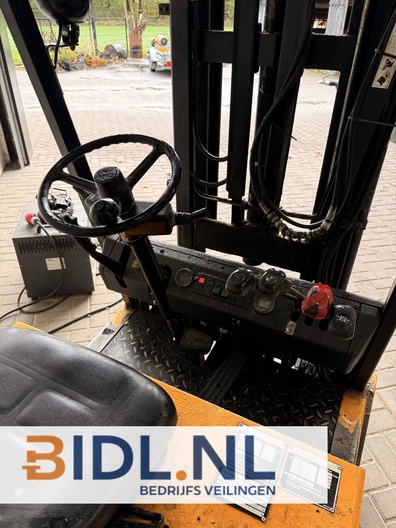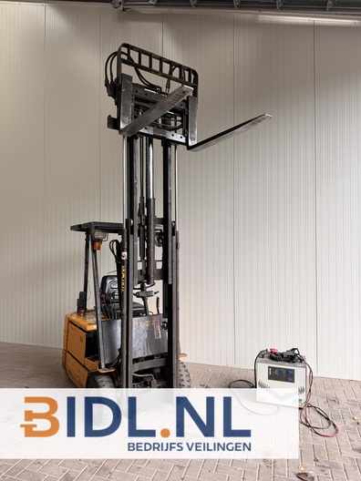 Deze heftruck uit 1993 is ideaal voor binnengebruik dankzij zijn elektrische aandrijving en compacte bouw.