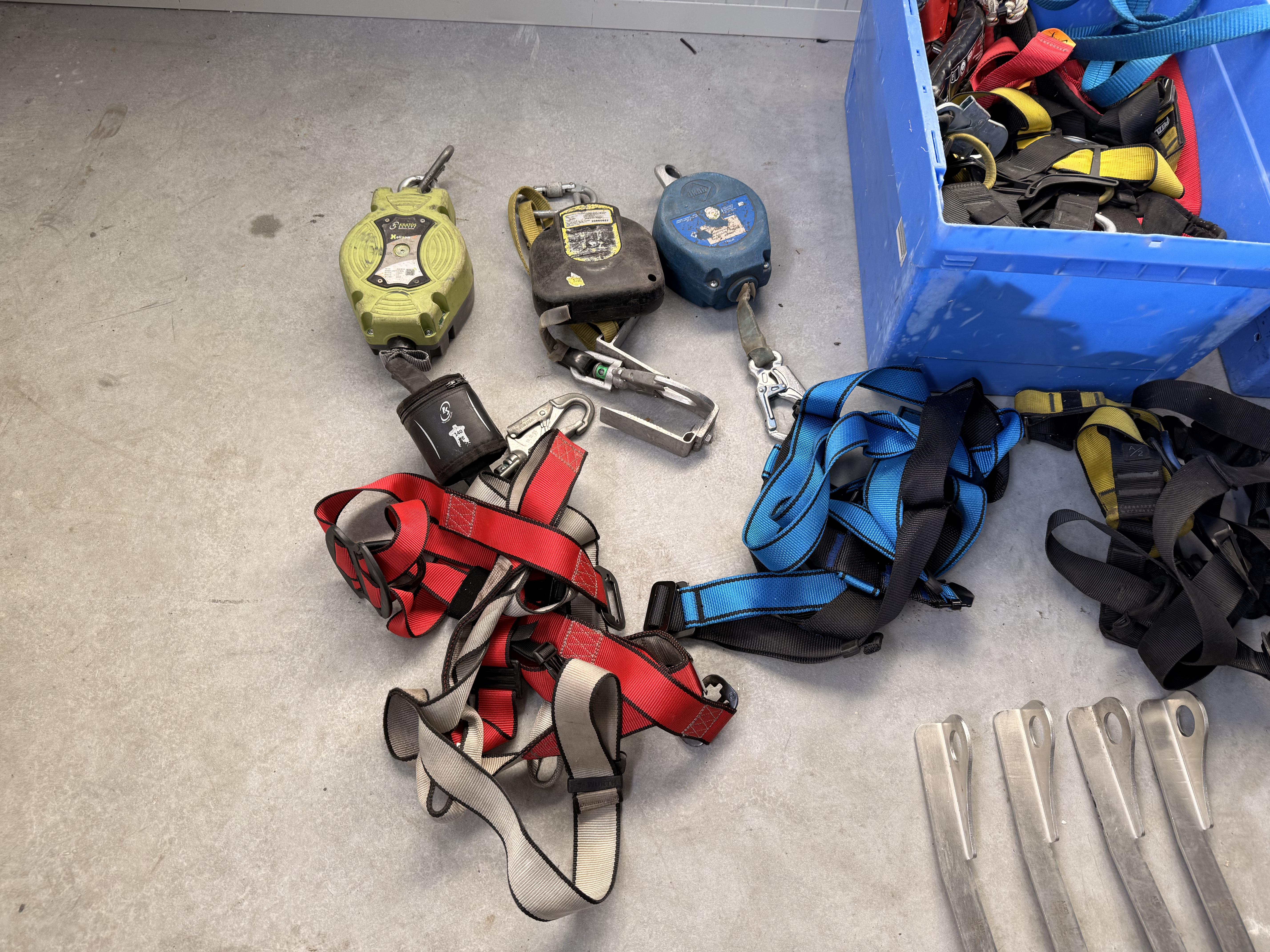 Partij valbeveiliging en hijsmiddelen – harnassen, valblokken en spanbanden
