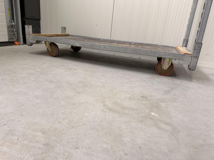 Stalen transportkar op zwenkwielen met opstaande staanders