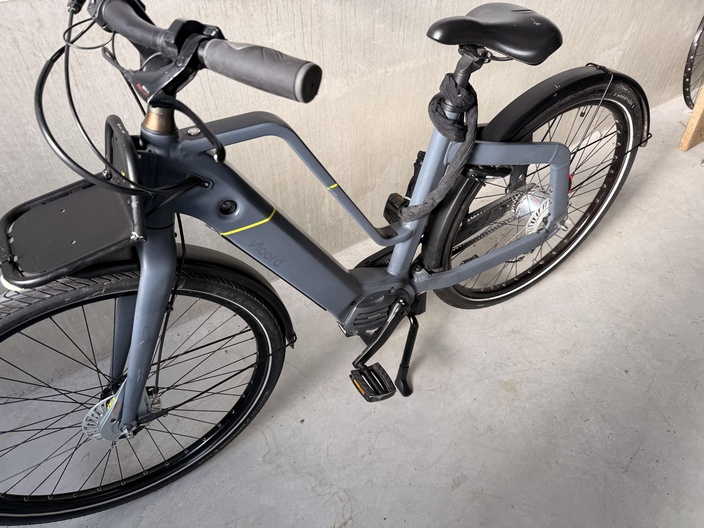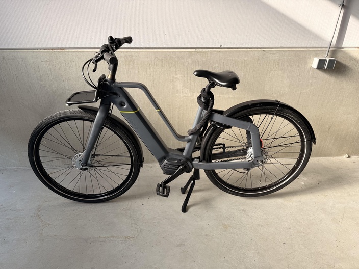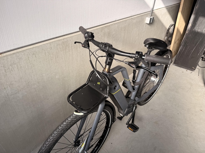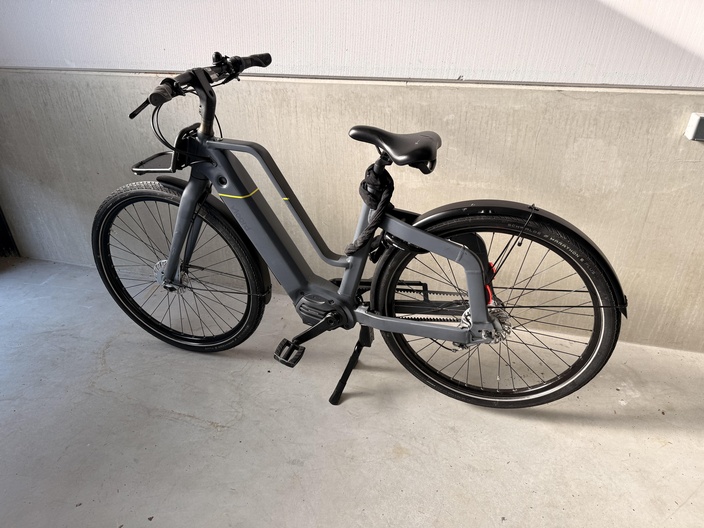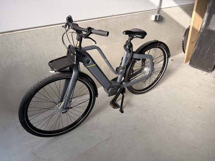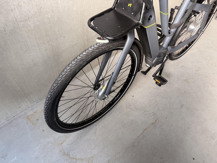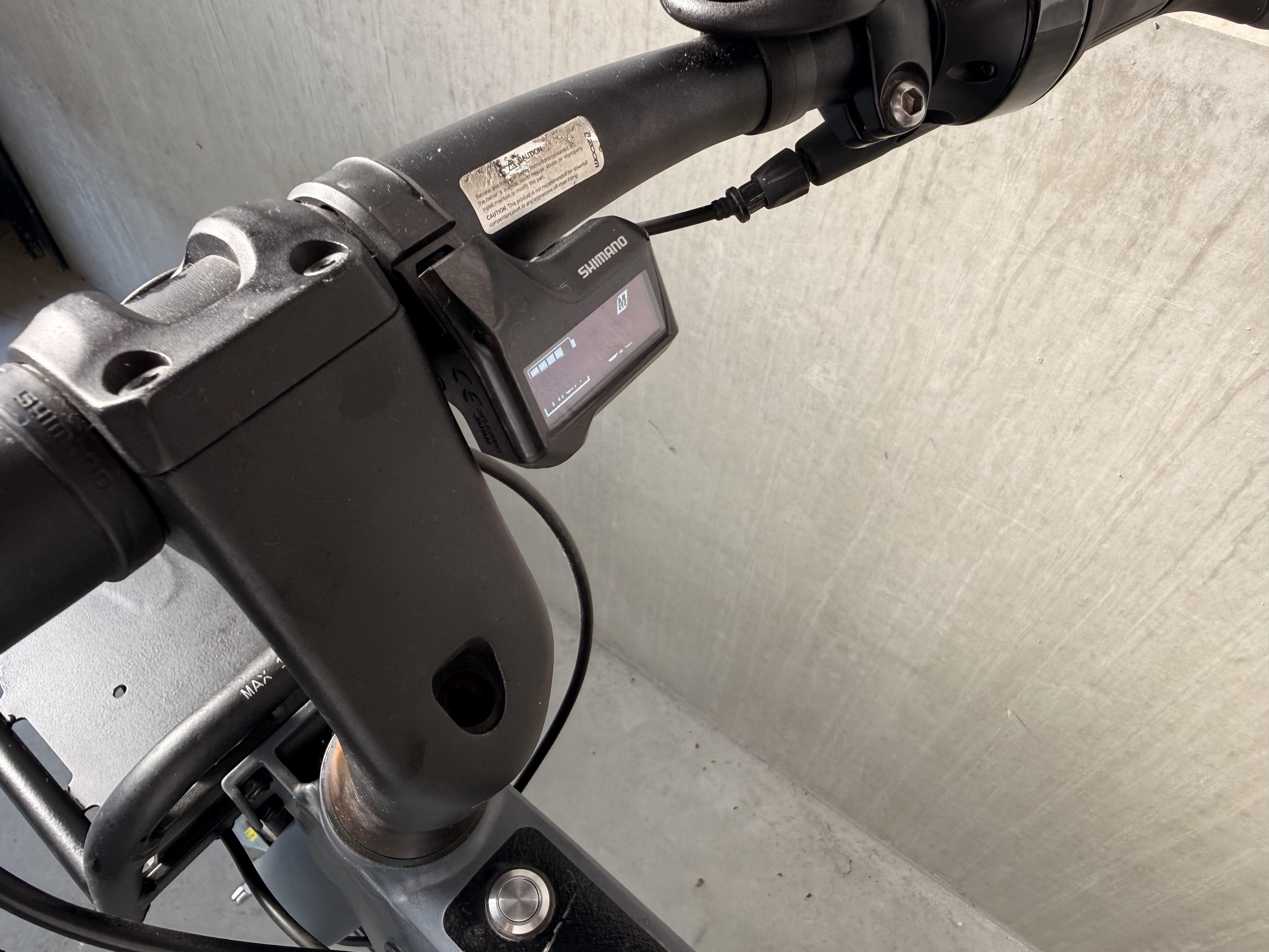 De fiets is voorzien van een recht stuur met handremmen, een bel en een display van het merk Shimano op het stuur. Aan de voorzijde van het frame is een vaste voordrager gemonteerd boven het voorwiel.