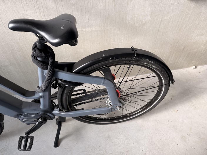 De wielen zijn voorzien van banden van het merk Schwalbe. Op het achterspatbord is een achterlicht zichtbaar.